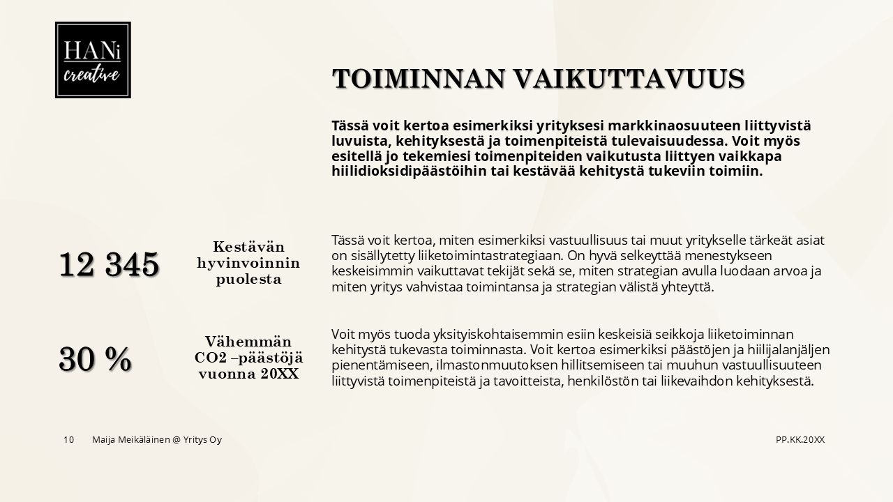 Yritysesittely-malli-HANiCreative-vaalea-beige-toiminnan-vaikuttavuus