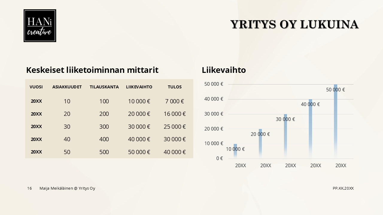 Yritysesittely-malli-HANiCreative-vaalea-beige-keskeiset-tunnusluvut
