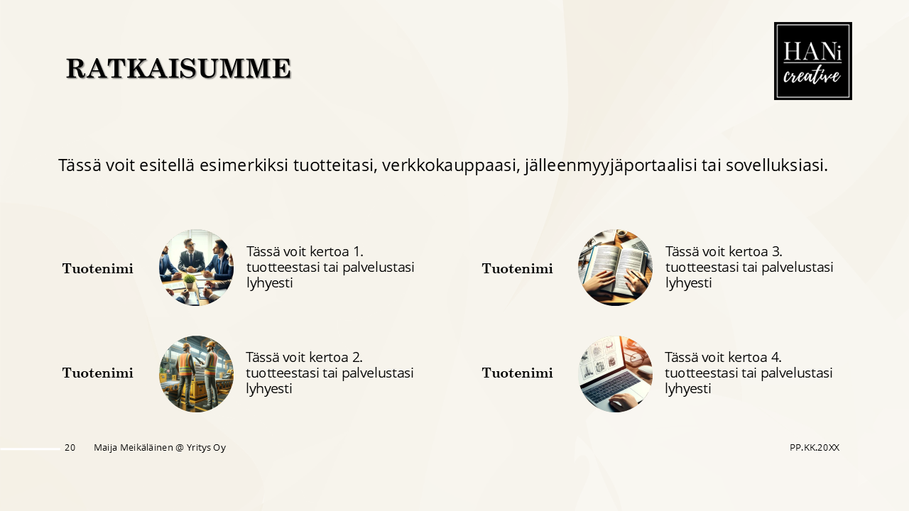 Yritysesittely-malli-HANiCreative-vaalea-beige-yhteenvetodia