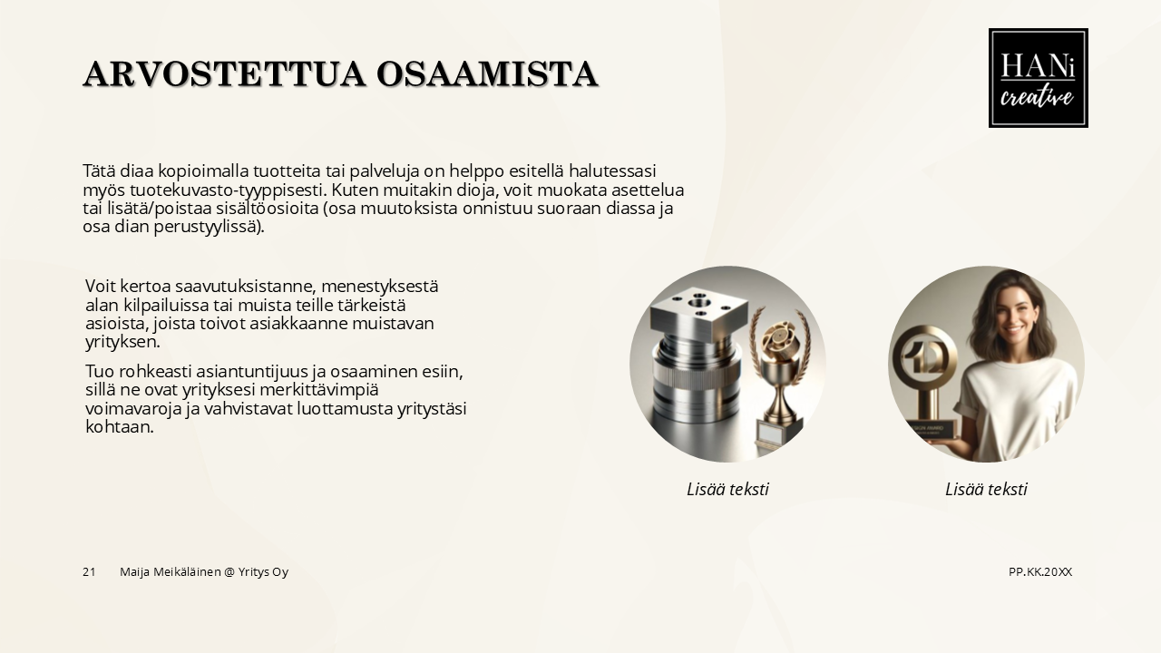 Yritysesittely-malli-HANiCreative-vaalea-beige-arvostettua-osaamista