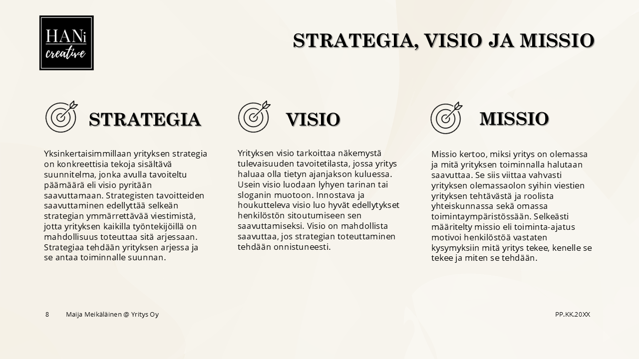 Yritysesittely-malli-HANiCreative-vaalea-beige-strategia-visio-missio