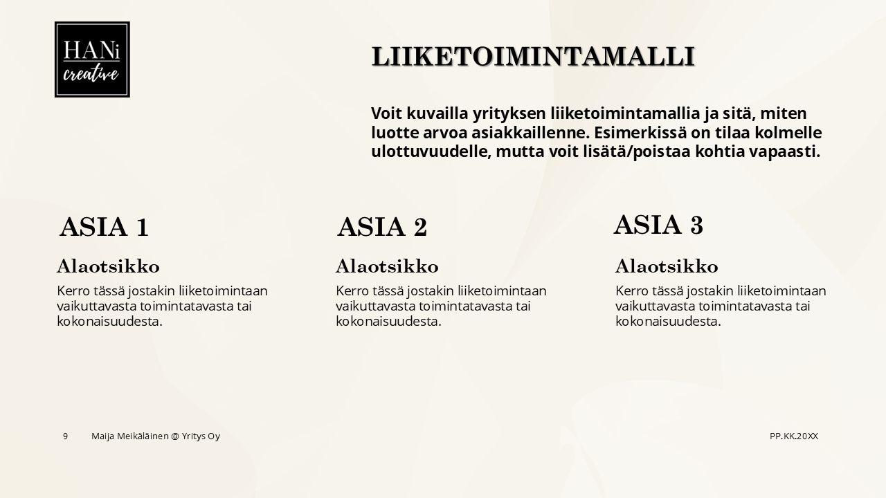 Yritysesittely-malli-HANiCreative-vaalea-beige-liiketoimintamalli